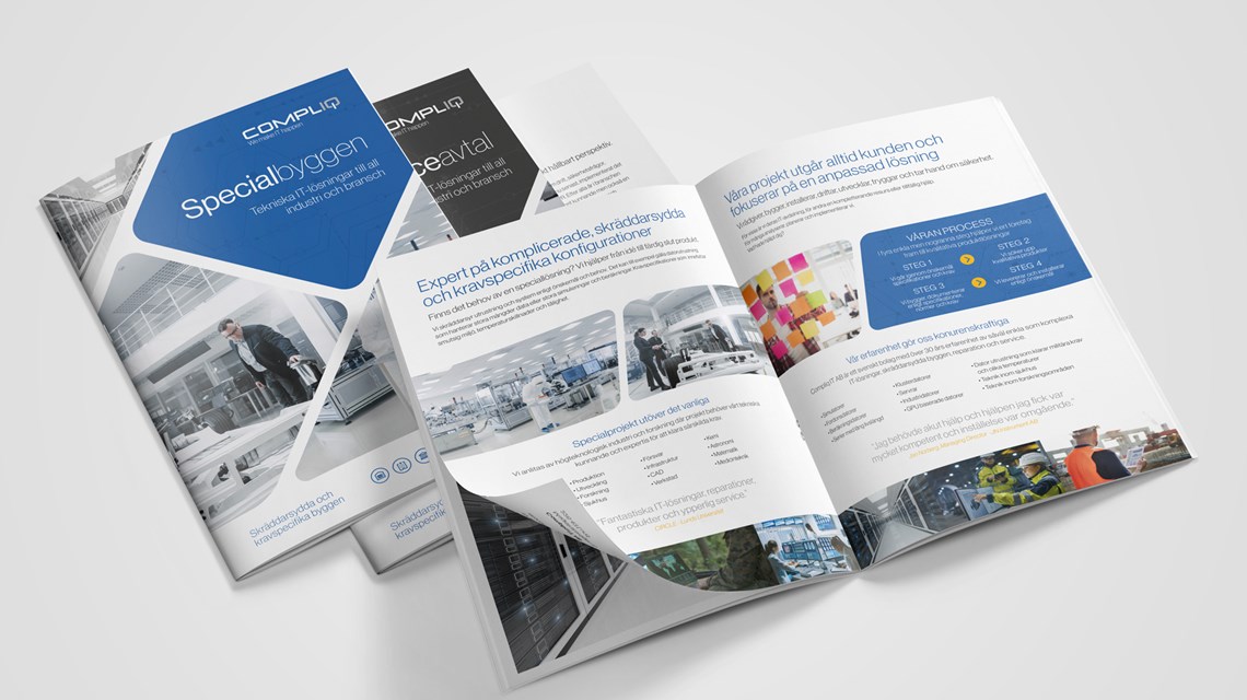 Ny folder, rollup och bildekaler som gör att Compliq uppfattas ett professionellt företag