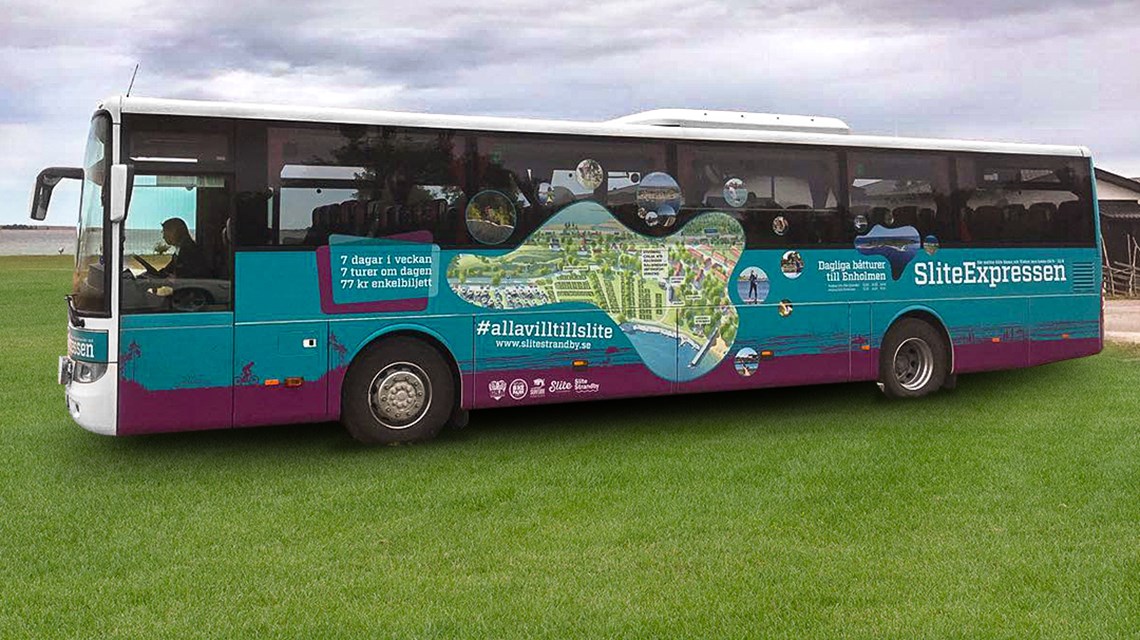 Dekaler till Slite Strandbys egna busslinje